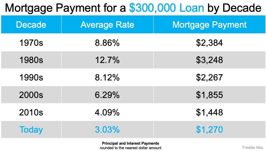 Clearly, buyers are capitalizing on today's low rates. As shown in the chart below, the average monthly mortgage payment decreases significantly when rates are as low as they are today.